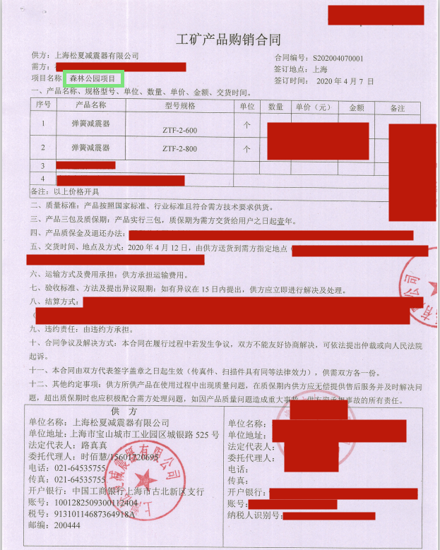 上海松夏減震器有限公司官方網(wǎng)站為您介紹:【福州森林公園項(xiàng)目】使用ZTF型彈簧減震器采購(gòu)合同信息,我們松夏公司2020年為【福州森林公園項(xiàng)目】使用ZTF型彈簧減震器,起到了減震和降噪的作用,以下是【福州森林公園項(xiàng)目】使用ZTF型彈簧減震器采購(gòu)合同介紹。